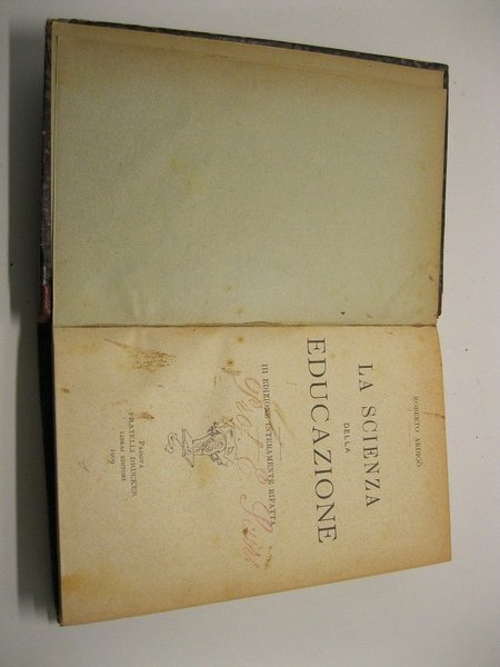 In 16, pp. 334. Lievi danni ai bordi dei piatti. M. pl. coeva con fr. oro al d. Roberto Ardigo' (Casteldidone1828 - Mantova, 1920), fu insegnante di filosofia all'Universita' di Padova, poi si dedico' completamente alle ricerche. Pur ricollegandosi per piu' fili allo Spencer, egli se ne distinse per una diversa interpretazione del concetto dell'evoluzione. Scrisse parecchie opere, tra cui: Pietro Pomponazzi (1869), La psicologia come scienza positiva, L'inconoscibile di H. Spencer e il positivismo, L'inconoscibile di Spencer e il Noumeno di E. Kant, Empirismo e scienza.