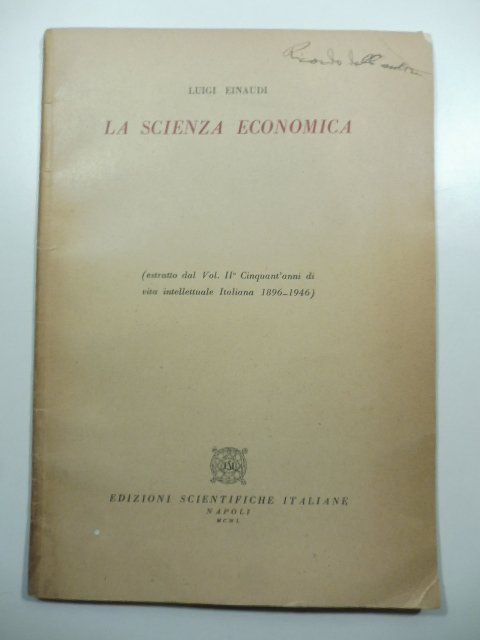 La scienza economica. (Estratto dal vol. II Cinquantanni di vita italiana 1896 - 1946)