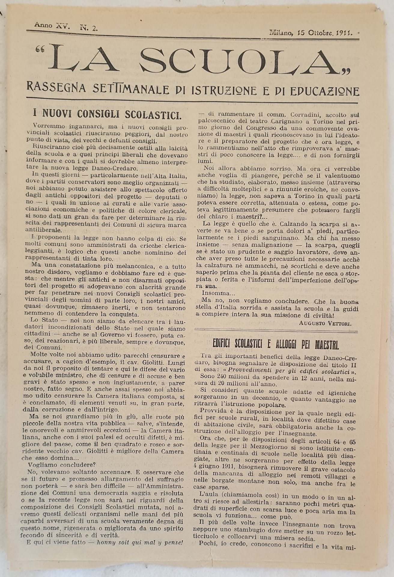 LA SCUOLA RASSEGNA SETTIMANALE DI ISTRUZIONE E DI EDUCAZIONE ANNO XV N. 2 MILANO 15 OTTOBRE 1911