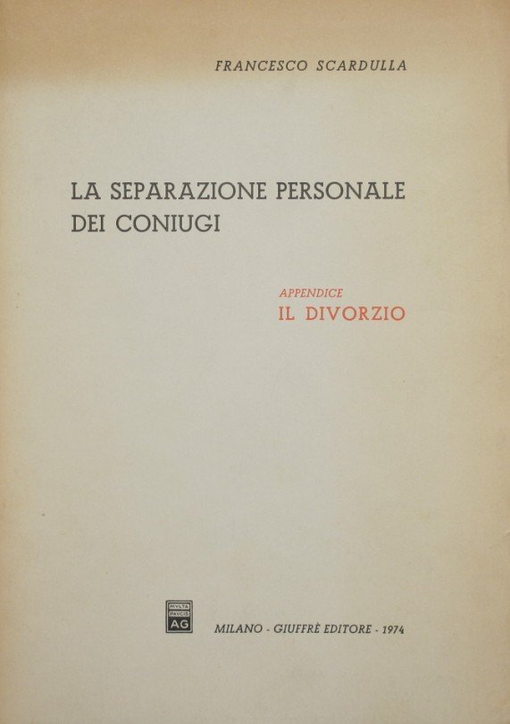 Appendice - Il divorzio - in 8° - pp.175 - Brossura editoriale - Volume quasi interamente intonso