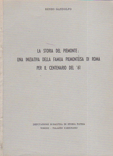 In-8°, pp. 8, brossura editoriale con dorso rinforzato. Estratto dal 'Bollettino Storico-Bibliografico Subalpino', LIX, 1961, fascicoli I-II. Allegati due numeri dell'aprile 1958 e del marzo 1959 del 'Notiziario della Famija Piemonteisa di Roma'.