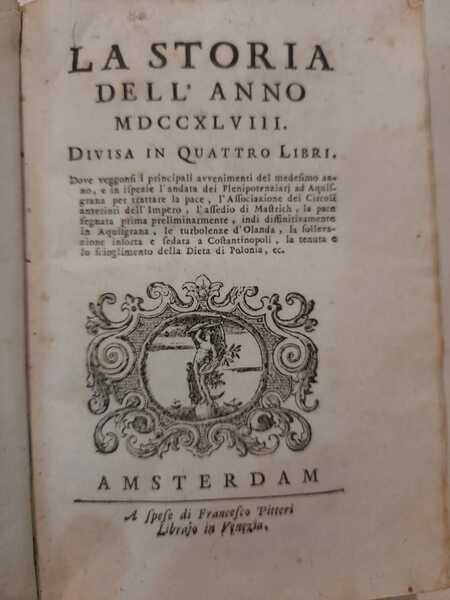 LA STORIA DELL'ANNO MDCCXLVIII DIVISA IN QUATTRO LIBRI. LA STORIA DELL'ANNO MDCCXLIX