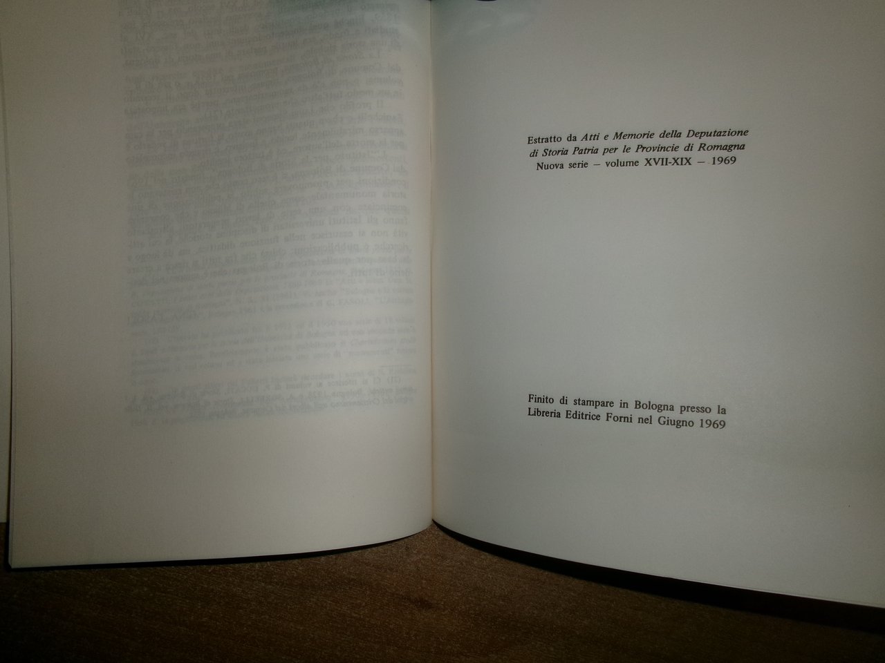 GINA FASOLI. Bologna, Forni Editore, 1969. La Storia delle Storie di Bologna. In-8°, cart. edit. da pag. 69 a pag. 92 (estratto da Atti e Memorie della Deputazione di Storia Patria... Opuscolo come nuovo. Ne. mob. nero 10 entro busta trasp.