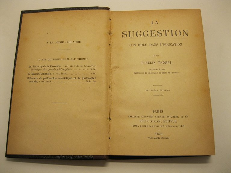 La suggestion, son role dans l'education. Par P. Felix Thomas, docteur es lettres, professeur de philosophie au lice'e de Versailles Deuxieme e'dition