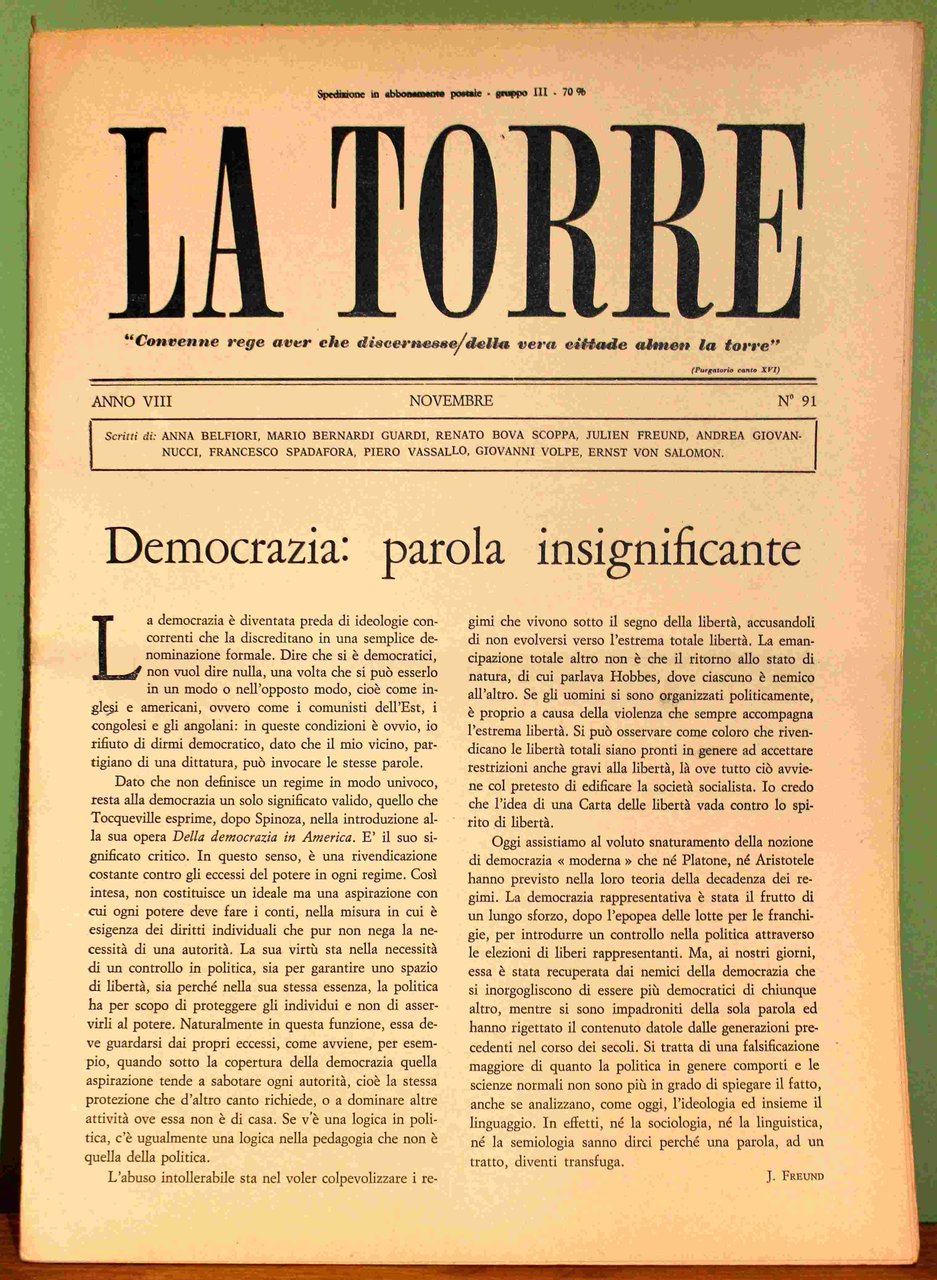 La Torre. Rivista mensile. Anno VIII. 1977. 9 fascicoli (su 10)