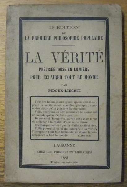 La Vérité dans sa Réalité mise en lumière pour tout le monde. Deuxième édition de la première philosophie populaire.
