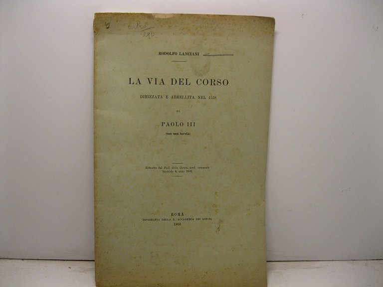 La via del Corso dirizzata e abbellita da Paolo III (con una tavola) Estratto dal Bull. della Comm. arch. comunale (fascicolo 4, anno 1902)