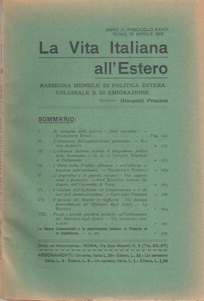 La Vita Italiana all'Estero Anno III Fascicolo XXVIII Roma, 15 Aprile 1915