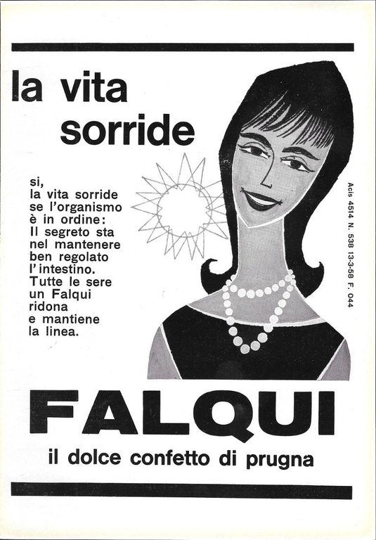 La vita sorride. Falqui, il dolce confetto di prugna. Advertising 1962