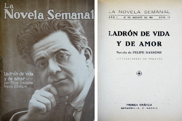 Madrid, La Novela Semanal, 1921. 8vo.; 61 pp., con ilustraciones de Penagos. Cubiertas originales.