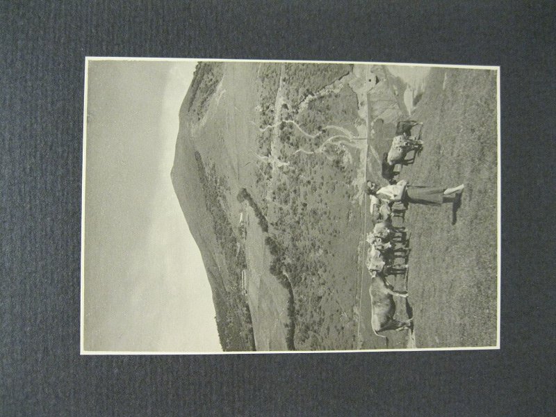 Fotografia originale in b/n vintage, stampa alla gelatina ai sali d'argento, didascalia manoscritta al verso, misura cm 10 x 14,5 montata su cartoncino bordato cm 16,6 x 22,7 ritrae una donna accanto ad un gruippo di mucche sua distesa erbosa delle Alpi Boffalora.