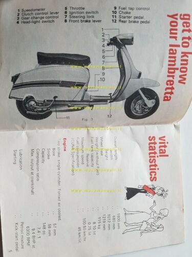 Lambretta India 150 DL - Grand Prix manuale uso manutenzione INGLESE originale
