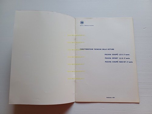 Lancia Fulvia Coupè 1.3-HF 1.6 -Sport 1.3 1970 Caratteristiche Tecniche depliant