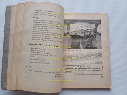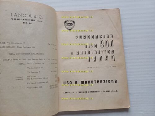 Lancia Furgoncino 800 -Autolettiga Ardea 1950 manuale uso manutenzione originale
