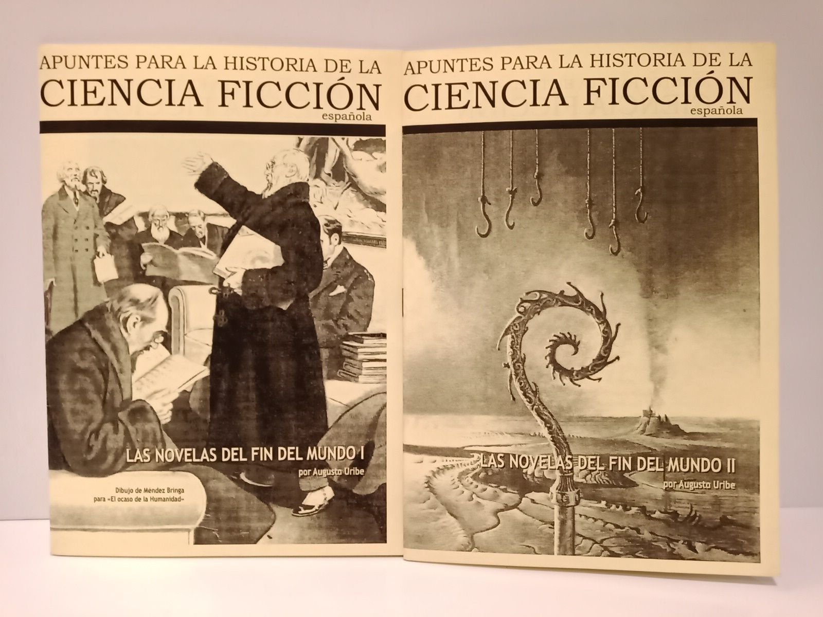 [S.l.]: [s.n., pero edita el autor], [ca. 2007].- 2 Vols. (23; 23 pp.): ilus.; 4º menor (21 x 14,8 cm).- (Apuntes para la Historia de la Ciencia Ficción Española).- CONTIENE: Vol. 1, I. Los zootauros de Marte que asolaron la tierra; II. Las confesiones proféticas de Cayac-Hamuaca; III. Meditación sobre el fin de un mundo; IV. El ocaso de la humanidad. Vol. 2, I. Cuando llegó la Bestia del Apocalipsis; II. El advenimiento del fin de los tiempos; III. El cuento del comienzo y del final.* CIENCIA-FICCIÓN, OVNIS, FANTASÍA Y LITERATURA FANTÁSTICA