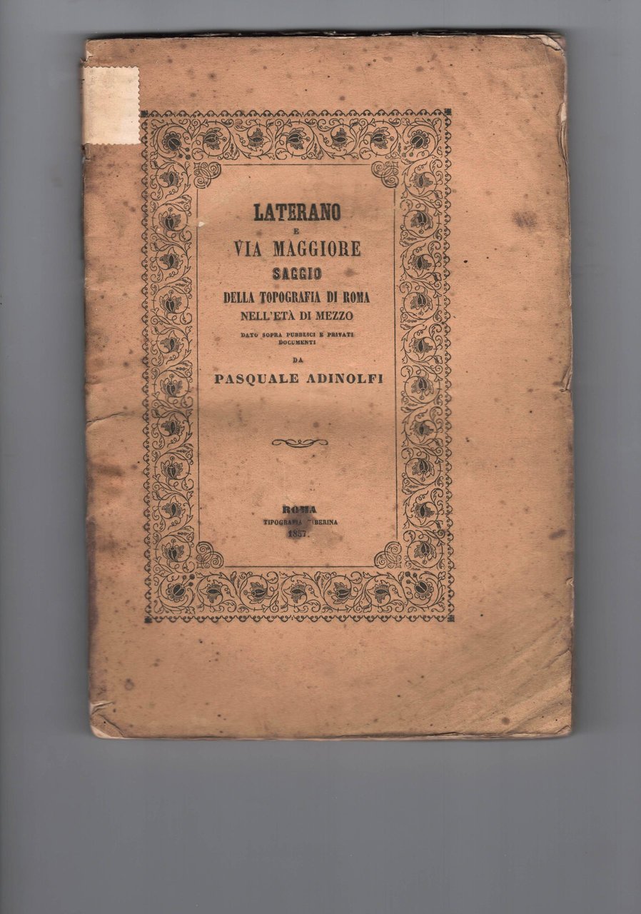 Laterano e Via Maggiore. Saggio della topografia di Roma nell'età di mezzo dato sopra pubblici e privati documenti.
