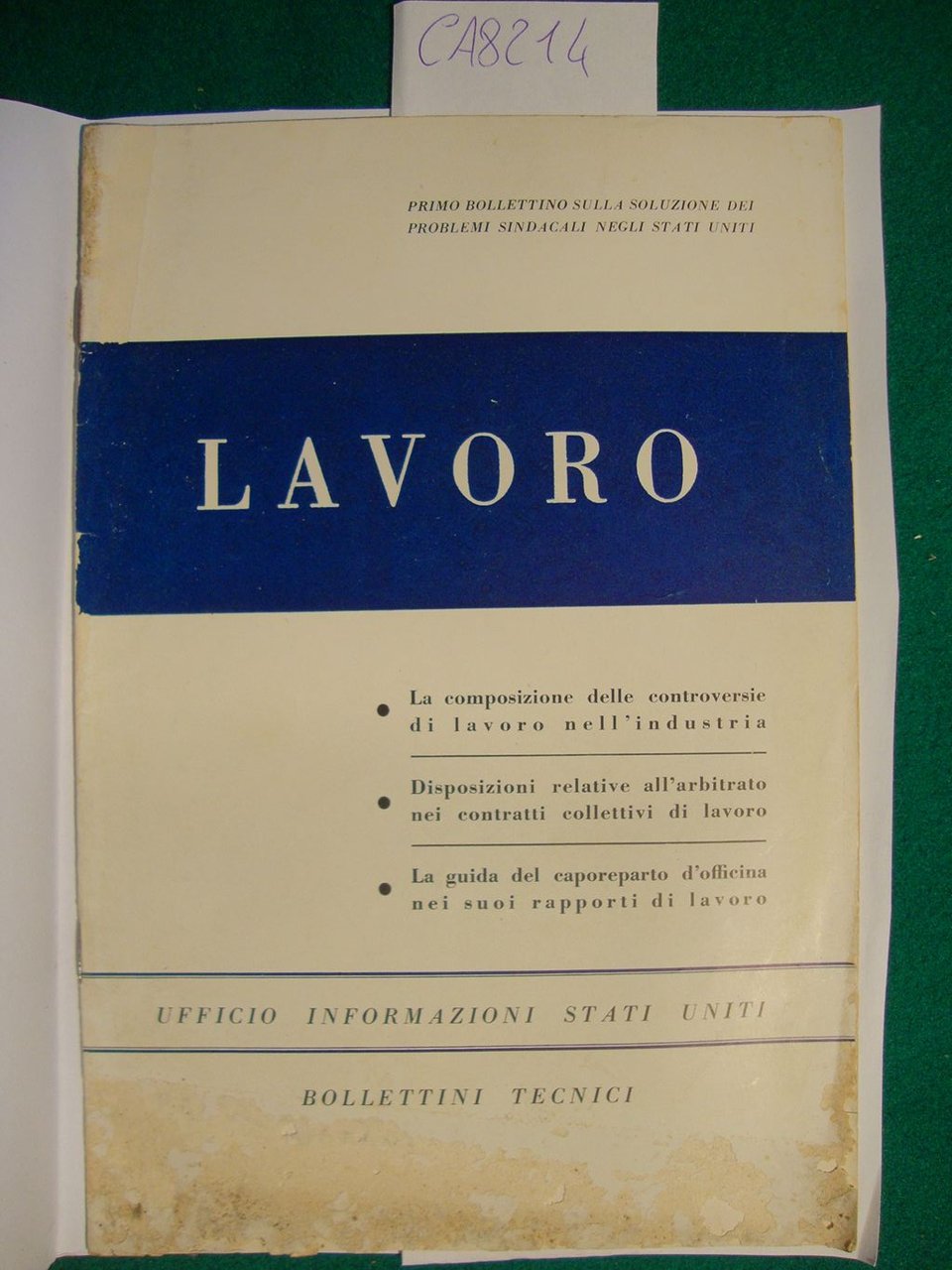 Lavoro - Primo bollettino alla soluzione dei problemi sindacali negli Stati Uniti - Ufficio Informazioni Stati Uniti - Bollettini tecnici