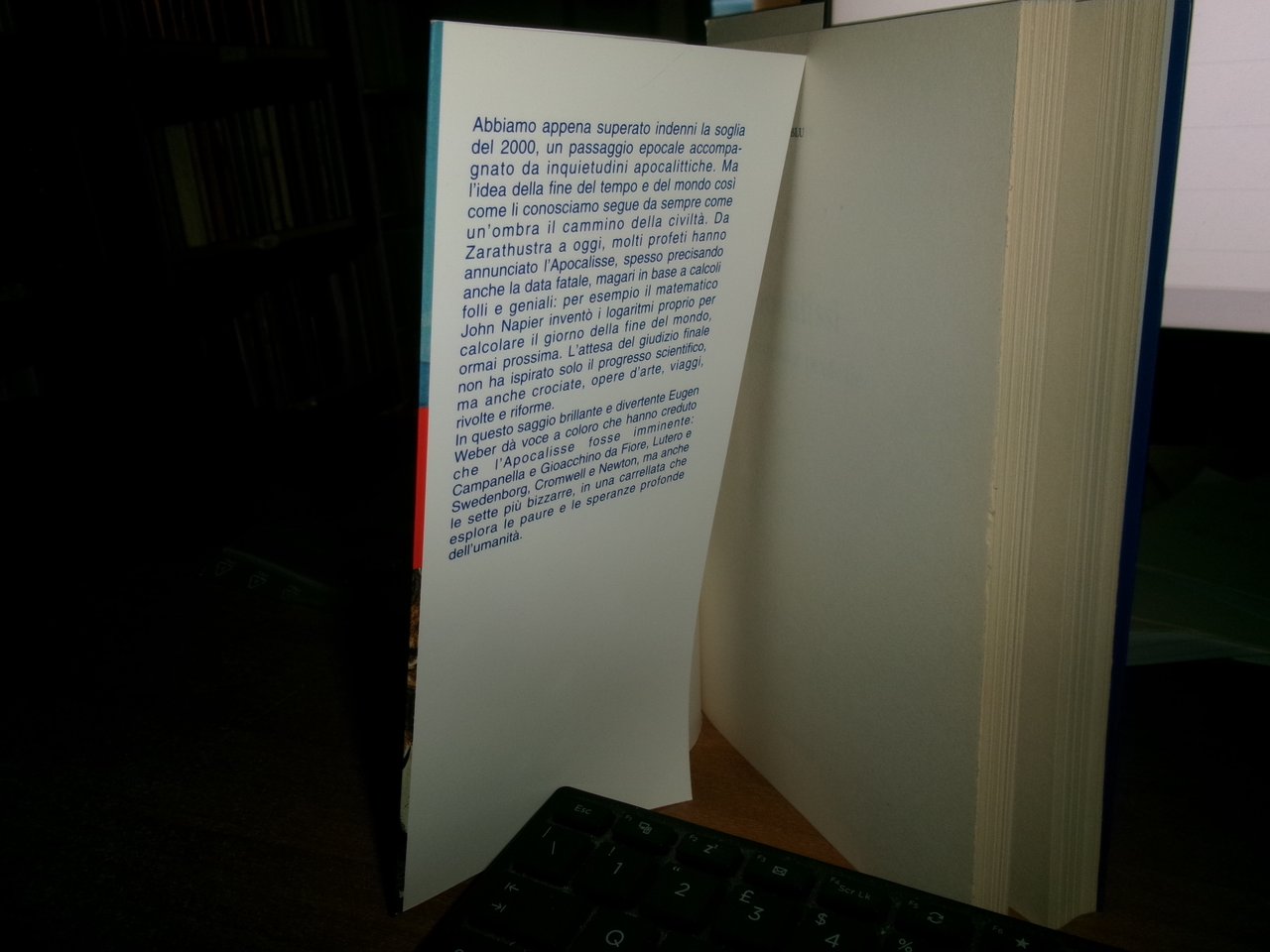WEBER EUGEN. Milano, Garzanti, 2000. Le Apocalissi. Profezie, culti e millenarismi attraverso i secoli. In-8°, cart. edit. con risvolti. 295 pp. Come nuovo. Neg. esot. mob. 50