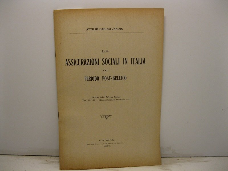 Le assicurazioni sociali in Italia nel periodo post-bellico. Estratto dalla Riforma Sociale, fasc. 10-11-12, ottobre-novembre-dicembre 1921