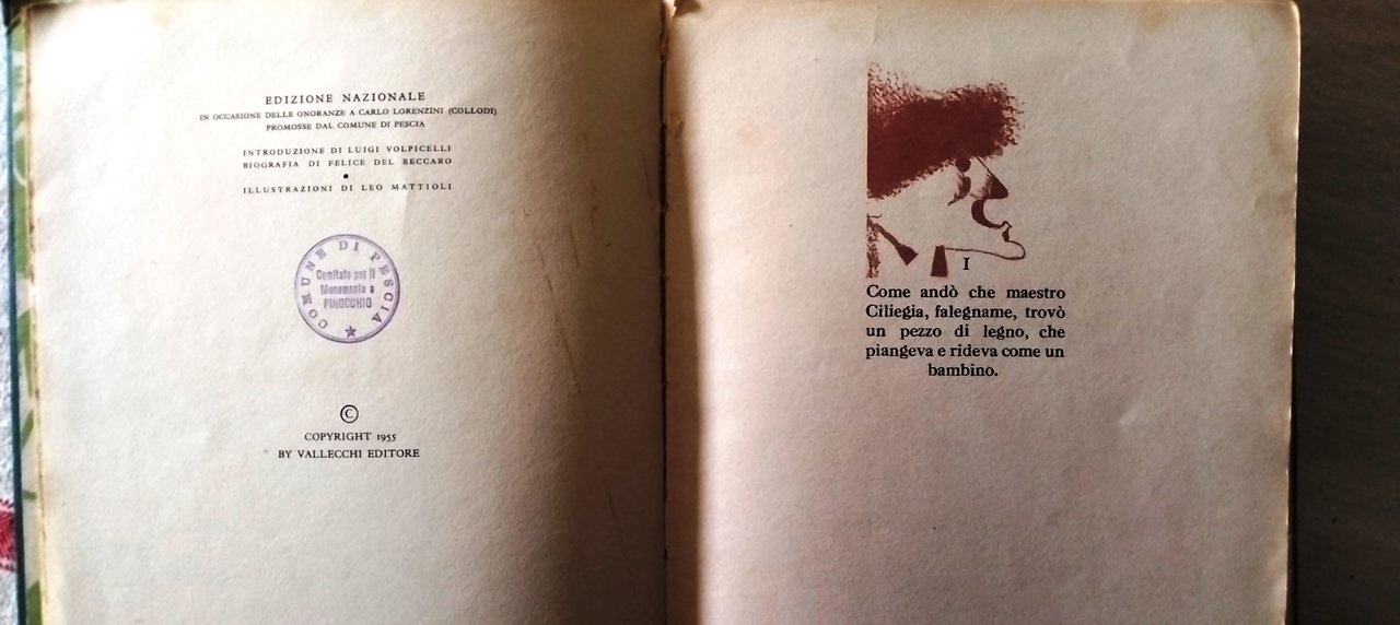 4° tela edit. con dorso rifatto, pp. 442, con ritr. in b/nero dell'A. e 59 belle tavole a colori f.t. di cui 9 ripieg. di Leo Mattioli. Edizione nazionale in occasione delle onoranze a Carlo Lorenzini (Collodi) promosse dal Comune di Pescia. Introduzione di Luigi Volpicelli. Biografia di Felice Del Beccaro. Esempl. con margin. tracce d'uso: etichetta dattiloscritta all'occhietto (dono del comune.all'alunno.), 3 cc. con strappetto margin. (senza perdite). Nel compl. buon esemplare.