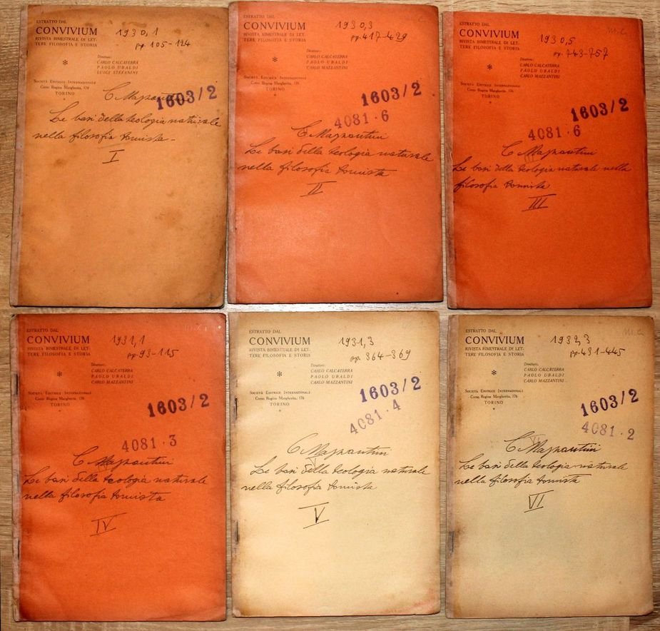 Le basi della teologia naturale nella filosofia tomista. Sei fascicoli. Estratti originali da Convivium