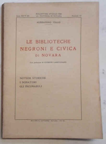 Le biblioteche Negroni e Civica di Novara. Notizie storiche, i donatori, gli incunaboli.