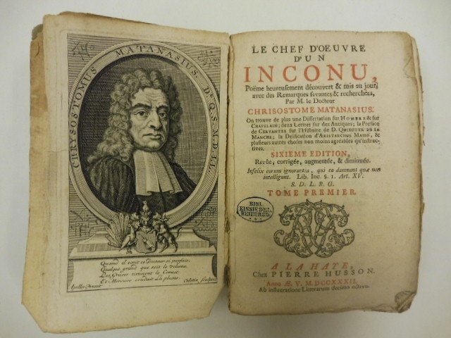 Le chef d'oeuvre d'un inconu poeme heureusement decouvert & mis au jour avec des remarques savantes & recherchees Par M. le Docteur Chrisostome Matanasius . Sixieme edition revue et corrge'e Tome premier ( - deuxieme),