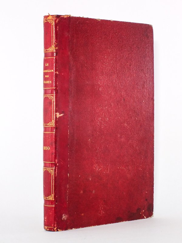 1 vol. petit in-4 rel. demi-basagne chagrinée rouge, dos orné à 5 faux nerfs, Le Conseiller des Dames et des Demoiselles, Novembre 1850 à Octobre 1851, 378 pp. + table des matières. Avec des articles sur des sujets aussi divers que : l'accord des pianos ; le blanchissage des broderies ; la confiture de coing ; une chronique mensuelle des salons (par la vicomtesse de Sabran ; une causerie des modes ; un courrier des théâtres ; etc. Etat satisfaisant (couv. frottée en coins, fortes rouss., petit accrocs sur qques pages, bon état par ailleurs, avec rel. solide). La revue mensuelle Le Conseiller des Dames parut de 1847 à la fin du XIXe siècle. Il s'agissait d'un mensuel à destination d'un lectorat bourgeois, qui seul pouvait s'offrir un abonnement à une telle revue (un abonnement annuel à une telle revue représentait près de 10 jours de revenu d'un ouvrier de l'époque). Son contenu cherchait à joindre l'utile à l'agréable, et souhaitait couvrir l'ensemble des préoccupations de ses lectrices. Peu courant, particulièrement dans ses années les plus anciennes.