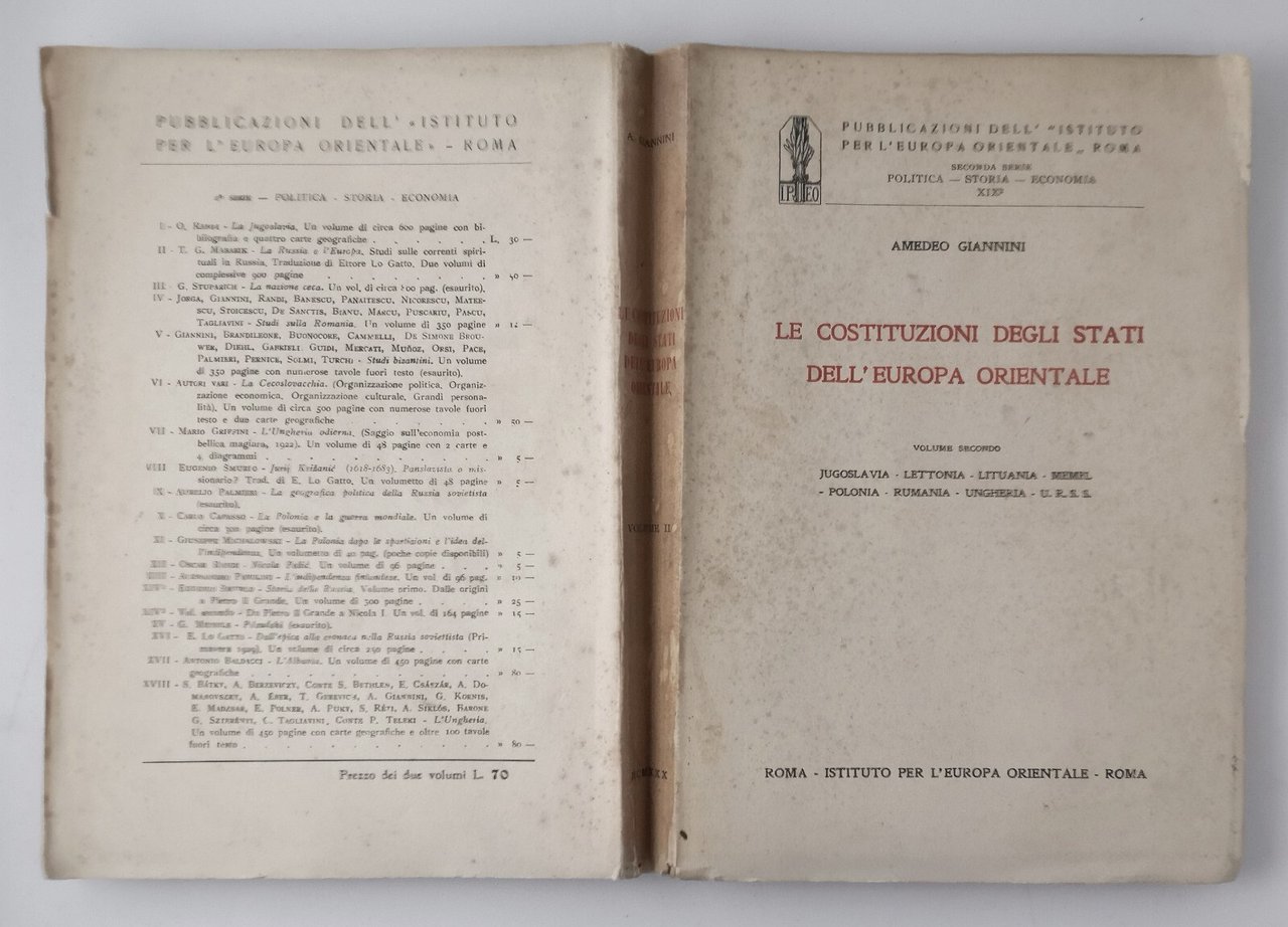 LE COSTITUZIONI DEGLI STATI DELL'EUROPA ORIENTALE di Amedeo Giannini. Volume II.
