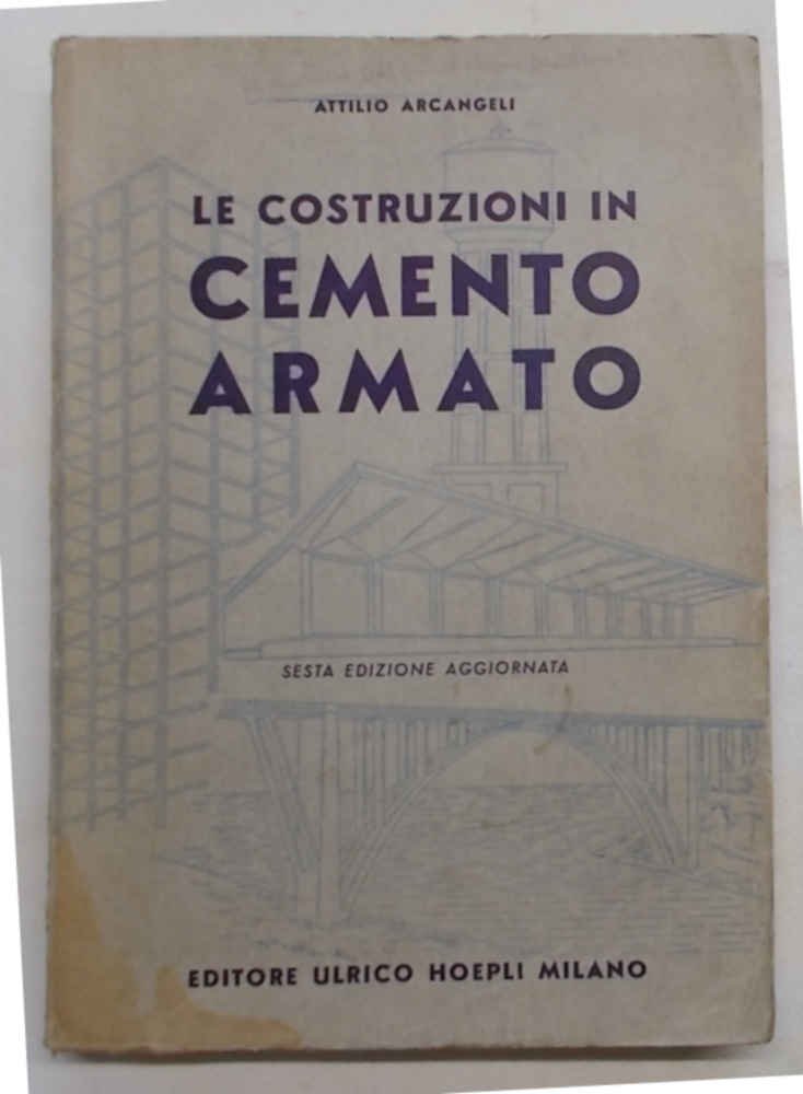 In 8° (cm. 25 x 17,5); pagg. XII, 527; con 8 tavole f.t., 422 incisioni, formulario e tabelle n.t.; leggera cartonatura originale illustrata. Sottolineature in lapis e a penna. Manca l'occhietto. VG-. ** Sesta edizione aggiornata. Dati pratici sui materiali da costruzione e sulla esecuzione delle opere - Calcolo delle membrature - Cenni su alcune principali applicazioni e calcoli relativi.