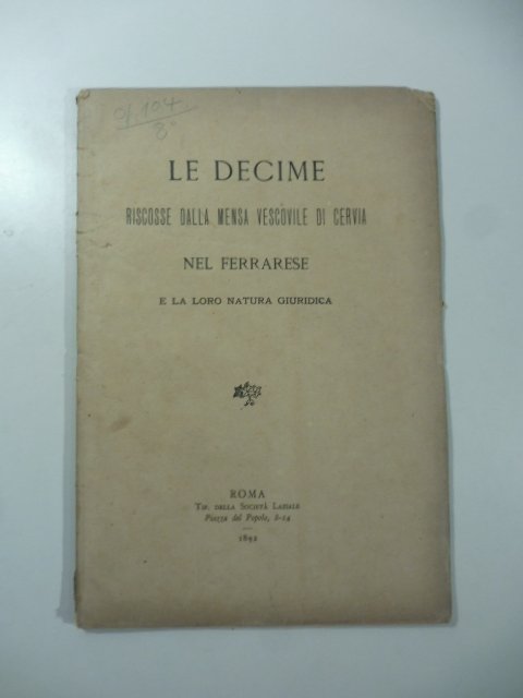 Le decime riscosse dalla mensa vescovile di Cervia nel Ferrarese e la loro natura giuridica