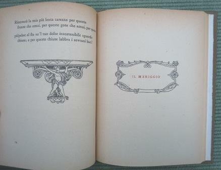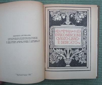 Volume rilegato, tela con titolo in oro al dorso, doppio frontespizio floreale a due colori, al secondo, dedica a stampa ("alla memoria del Poeta Enrico NENCIONI"). In 8°, cm 20, pp. 140 + (4). Con belle testatine, finalini e capilettera. Ottime condizioni.