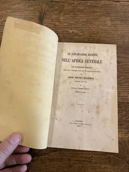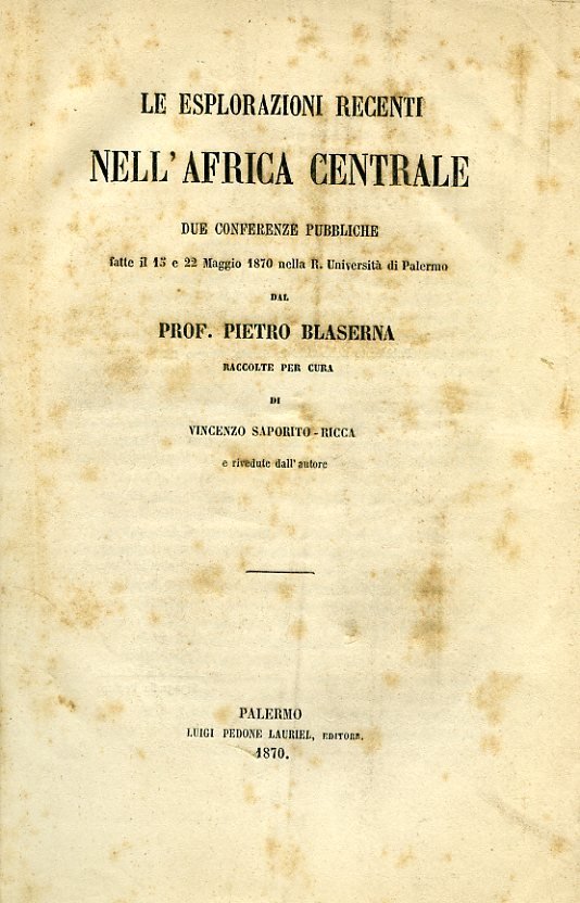 Le esplorazioni recenti nell'Africa Centrale. Due conferenze pubbliche fatte il 15 e 22 maggio 1870 nella R. Università di Palermo. Raccolte per cura di Vincenzo Saporito Ricca e rivedute dall'autore