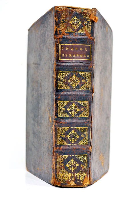 8 feuillets. 664 pages. 4 feuillets. (22,5x15 Cm). Plein veau. Dos à nerfs doré. Coiffes manquantes. Charnière efndue. Coins émoussés avec petits manques. Plats frottés. Titre gravé, portrait de l'auteur en frontispice, bandeau dessiné et gravé par Picart. Né à Tarascon le 7 juillet 1638 et mort à Paris en 1703, François Bertrand Barreme est un mathématicien français, considéré comme l'un des fondateurs de la comptabilité. Barrême fut le premier à publier un barème prêt à emploi, pour connaître les intérêts sous forme de colonnes numériques, destiné aux marchands. Il est l'auteur d'ouvrages de tables mathématiques pratiques, destinées à éviter des calculs fastidieux dans le domaine de l'argent. Son petit-fils Jean-Nicolas, qui fut premier commis de Law, perfectionna le système de comptabilité mis au point par son grand-père. Son "Livre des comptes faits", très souvent réédité et connu plus tard sous le nom de Barême universel, qui constitue l'un des ouvrages fondateurs de la comptabilité. Barreme a signé l'avis au publique pour éviter la distribution d'exemplaires contrefaits.