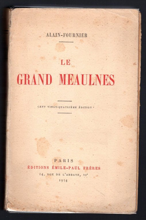 Libro vintage in-16°, brossura con 363 pagg, Parigi, 1934. Narrativa. Centoventriquattresima edizione. Testo in lingua francese. Note a matita in prima bianca. Tagli non rifilati. Sovraccoperta in acetato.