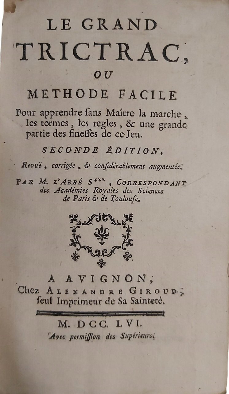 LE GRAND TRICTRAC ou Methode facile pour apprendre sans maitre la marche, les termes, les regles, et une grande partie des finesses de ce jeu.