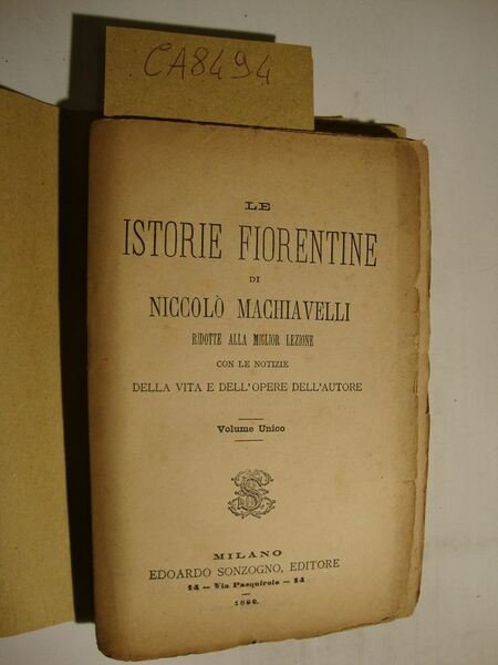 Le Istorie fiorentine di Niccolò Machiavelli ridotte alla miglior lezione con le notizie della vita e dell'opere dell'autore - Volume unico