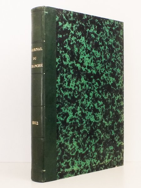 1 vol. gr. in-4 rel. demi-basane verte, ill. noir et blanc, Le Journal du Dimanche, Bureaux rue Guénégaud 15, Paris, 18 - 18 , pp. + pp. + pp. Contient notamment : Les Mohicans de Paris (A. Dumas) ; La fille du diable (P. Féval) ; Un rêve d'amour (F. Soulié) ; Voyage pittoresque en Grèce et en Orient (Chéron) ; etc. Les ouvrages de A. Dumas et P. Féval avait commencé leur parution dans les derniers numéros de l'année précédente. Les "Mohicans de Paris" continueront leur parution en 1863. Etat très satisfaisant (couv. lég. frottée sur bords, bon état par ailleurs) pour cet ensemble d'une revue contenant de nombreux romans sous la forme de feuilletons. Notre librairie propose les autres années de cette revue, sous des reliures similaires. Attention : il s'agit ici des numéros de toute une année, et pas seulement d'un semestre. Poids de 2 Kg.