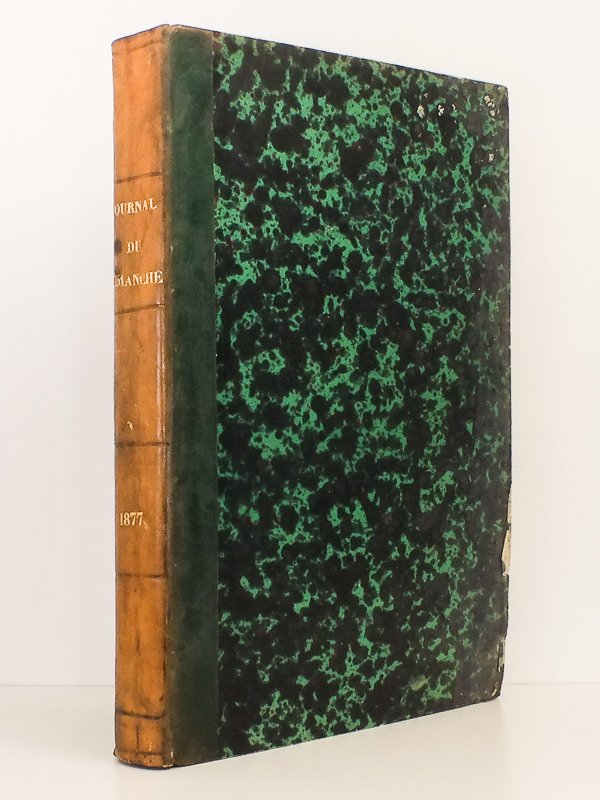 1 vol. gr. in-4 rel. demi-basane verte, ill. noir et blanc, Le Journal du Dimanche, Bureaux rue Guénégaud 15, Paris, 1877 , 415 pp. + 431 pp. Contient notamment : Jean Le Gueux (E. Daudet) ; Le crime des femmes (R. de Navery) ; L'article 47 (A. Belot) ; L'esclave blanche (Aimard, G.) ; etc. Etat très satisfaisant (couv. lég. frottée sur bords, bon état par ailleurs) pour cet ensemble d'une revue contenant de nombreux romans sous la forme de feuilletons. Notre librairie propose les autres années de cette revue, sous des reliures similaires. Attention : il s'agit ici des numéros de toute une année, et pas seulement d'un semestre. Poids de 1,9 Kg.