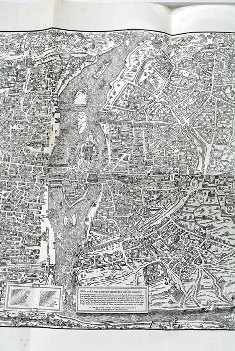 1: Texte traduit et annoté par Jean-Paul Laurent, 83 pages. 3 feuillets. 2: Le ménagier de Paris, LVI. 3 feuillets. 3: Carte de Paris: 44 x 55 Cm. (27x21 Cm). Brochés. Couvertures imprimées en couleurs. Boîtier recouvert d'une tapisserie en couleurs. Petit accident en bas du dos du volime nº 1. Rousseurs. "Le ménagier de Paris. Composé vers 1393 par un bourgeois parisien contenant des préceptes moraux, quelques faits historiques, des instructions sur l'art de diriger une maison, des renseignements sur la consommation du Roi, des Princes et de la ville de Paris, à la fin du quatorzième siècle, des conseils sur le jardinage et sur le choix des chevaux, un traité de cuisine fort étendu, et un autre non moins complet sur la chasse à l'épervier." L'exemplaire est la réimpression, faite d'après l'unique édition établie en 1946 par le Baron Pichon. Ce texte a été écrit par un contemporain de Taillevent. Le premier volume contient le texte original avec de très belles gravures en noir et orange. Le second est la traduction de ce même texte et pour finir la copie d'une grande carte de la ville de Paris faite vers 1550. Les deux volumes de texte ne sont pas coupés. Ouvrage résrvé aux amis du Crédit Lyonnais.