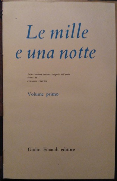 Le Mille e una notte. Prima versione italiana integrale dall'arabo diretta da Francesco Gabrieli. Volume primo. [Volume secondo].[Volume terzo].[Volume quarto].