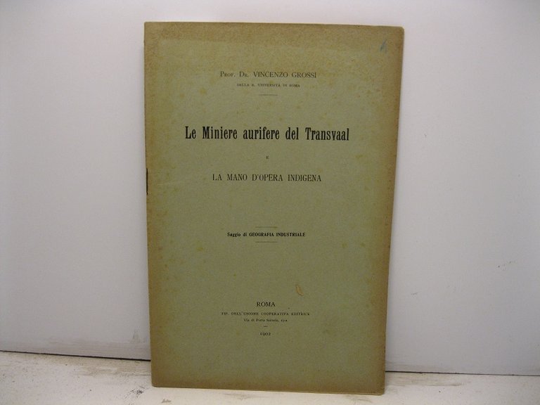 Le miniere aurifere del Transvaal e la mano d'opera indigena. Saggio di geografia industriale
