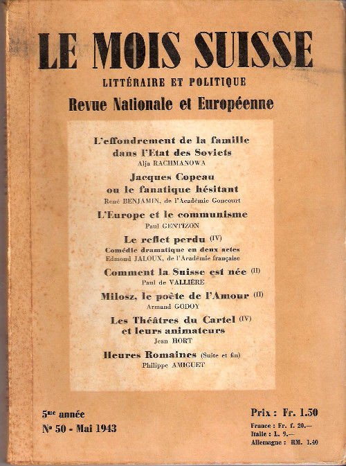 Revue Nationale et Européenne. Anno 5°, n.50, maggio 1943.
