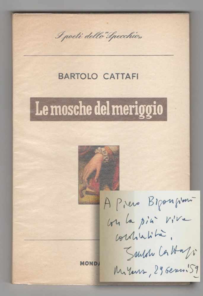 LIBROPrima edizione.CON AUTOGRAFO.Eccellente esemplare; conserva il pergamino protettivo. Dedica autografa dell’autore a Piero Bigongiari: «A Piero Bigongiari con la più viva cordialità. Bartolo Cattafi[,] Milano, 29 gennaio ‘59».