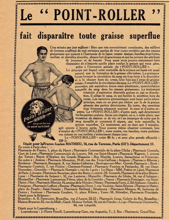 Le Point-Roller fait disparaitre toute graisse superflue. Advertising 1927