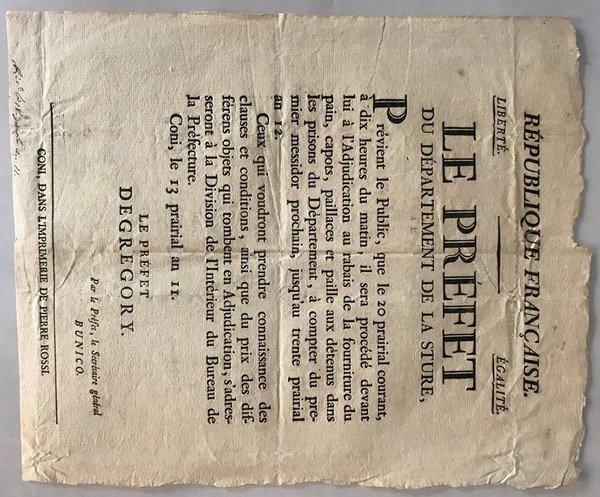 • Cuneo, Forniture carcerarie, Repubblica francese
