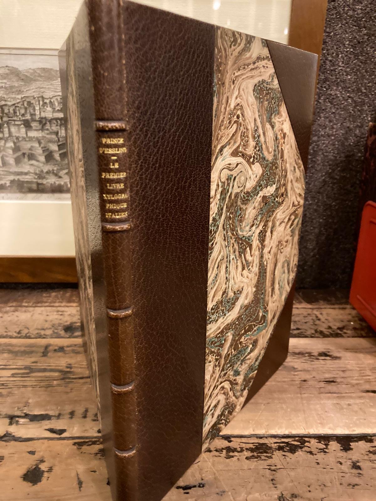 In 4° (280x230mm), pp. 44 con IX tavole f.t. e VI tavole a piena pagina n.t. Bella ed elegante legatura da amatore coeva, firmata Joli fils, in mezzo marocchino marrone e angoli, con dorso a nervi e titolo in oro, taglio di testa dorato. Ottimo esemplare.