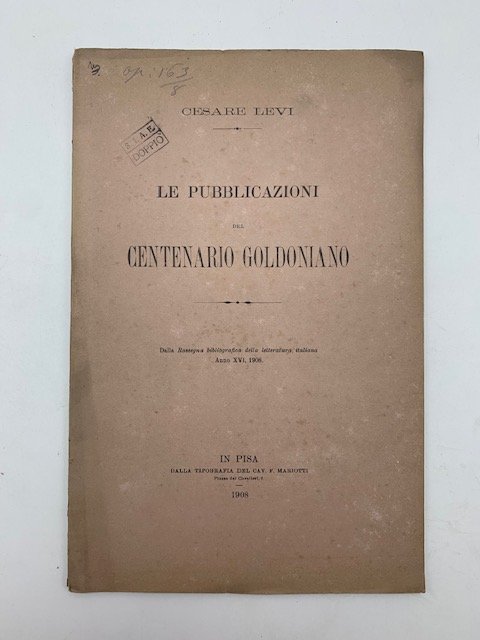 In 8 (cm 16 x 24), pp. 44. Dedica autografa al frontespizio. Brossura editoriale. Estratto editoriale dalla "Rassegna bibliografica della letteratura italiana".