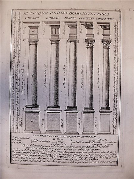 LE REGOLE DE’ CINQUE ORDINI di Architettura Civile di. Corredata dalle aggiunte fattevi nell’edizione romana dell’anno 1770 dagli architetti Gio. Batista Spampani e Carlo Antonini, che comprendono un Saggio di geometria, il Comento al testo, il Parallelo delle proporzioni degli Ordini.