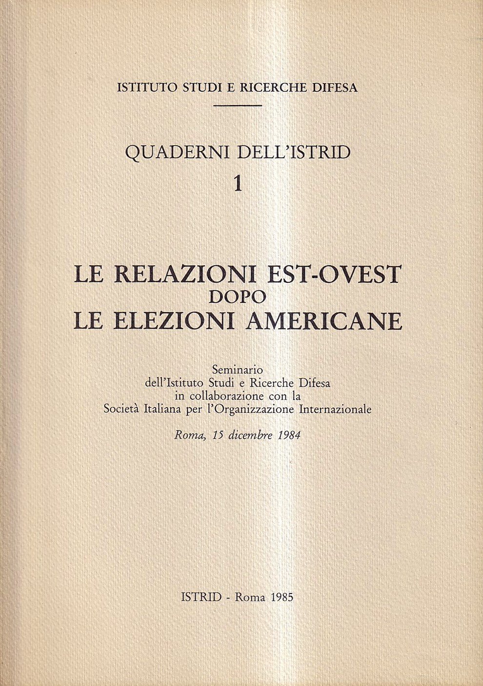 "Istituto Studi e Ricerche Difesa". Seminario in collaborazione con la Società Italiana per l'Organizzazione Internazionale. Roma, 15 dicembre 1984 - Brossura editoriale di 81 pagine. Esemplare in ottime condizioni.